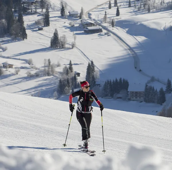 Für Einsteiger oder Tourengeher, die sich erst an den Sport herantasten möchten, bieten die Pisten der Almenwelt Lofer eine ideale Ausgangslage. Hier kannst du erste Erfahrungen sammeln und deine Technik in einer kontrollierten Umgebung verbessern. Für die etwas sportlicheren Tourengeher geht es entlang der Pisten bis auf die Gipfel „Grubhörndl“ oder „Schwarzeck“, von denen du beeindruckende Ausblicke auf das verschneite Lofer oder bis zum Berchtesgadener Land genießen können.
