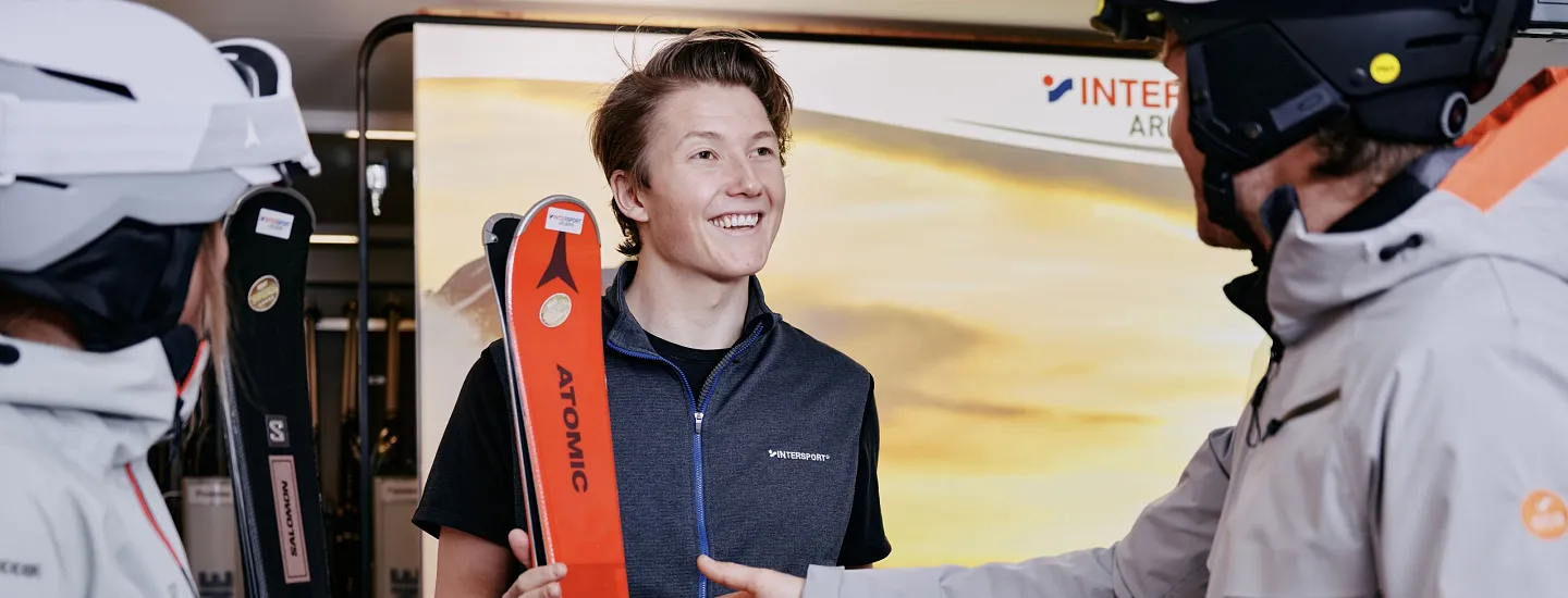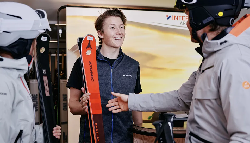Want to buy new skis? With us, you can try various ski models from our rental before making a decision to ensure the perfect fit for your style and needs. Our experienced staff will provide expert advice to help you make the right choice. After testing, you can purchase the desired equipment new in our sports shop, with the possibility of receiving up to two days of rental fees back.