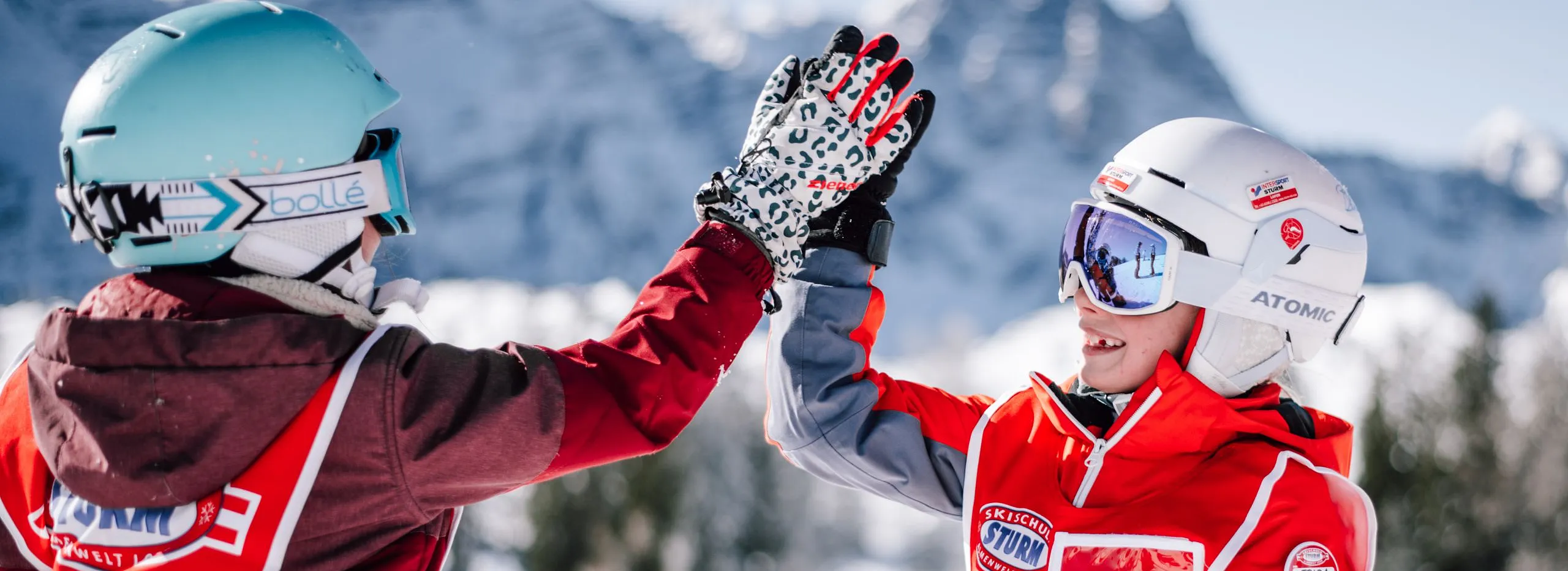 A children's ski course in our Lofer ski school costs from € 53.00 per day. The price applies to both beginners' courses and advanced ski courses. Book a ski course for your child now (Link: Reservation page children's course)